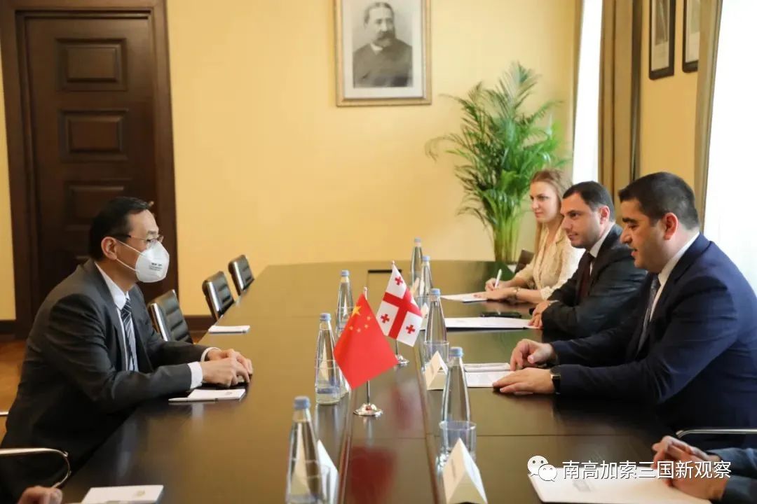 2022年6月27日,驻格鲁吉亚大使周谦到任拜会格议长帕普阿什维利,格议会教育和科学委员会主席、议会格中友好小组主席阿米拉赫瓦里,格议长办公室主任马哈什维利等出席会见。