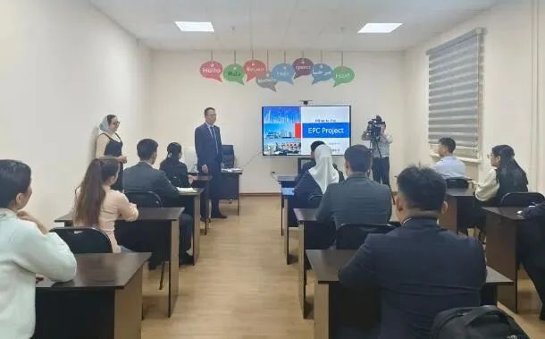 揭牌仪式当日,中国能建“鲁班工坊课堂”首场培训精彩开课,向塔什干国立交通大学学生分享中国技术和中国方案。