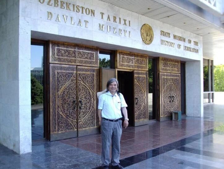 2009年,王建新第一次到达乌兹别克斯坦,在乌国家历史博物馆门前拍照留念。