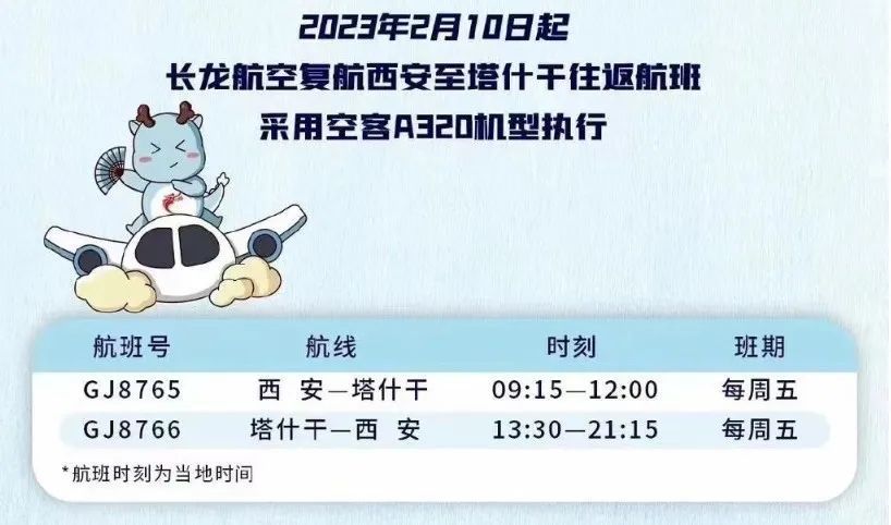 报道称,长龙航空西安往返塔什干航班2月10日迎来复航首班航班。