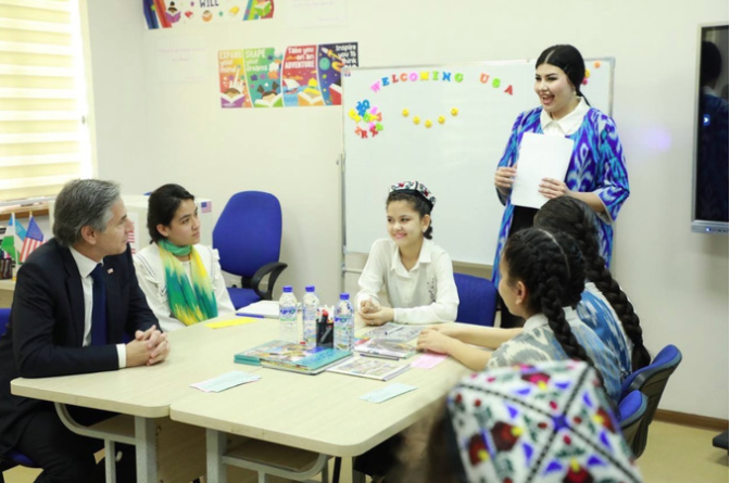 访乌期间,布林肯参观了乌国历史建筑群,指出美乌两国开展旨在保护乌历史资源的一系列合作。还会见了一群正在通过美国驻塔什干大使馆开展的Access计划学习英语的乌国学生。