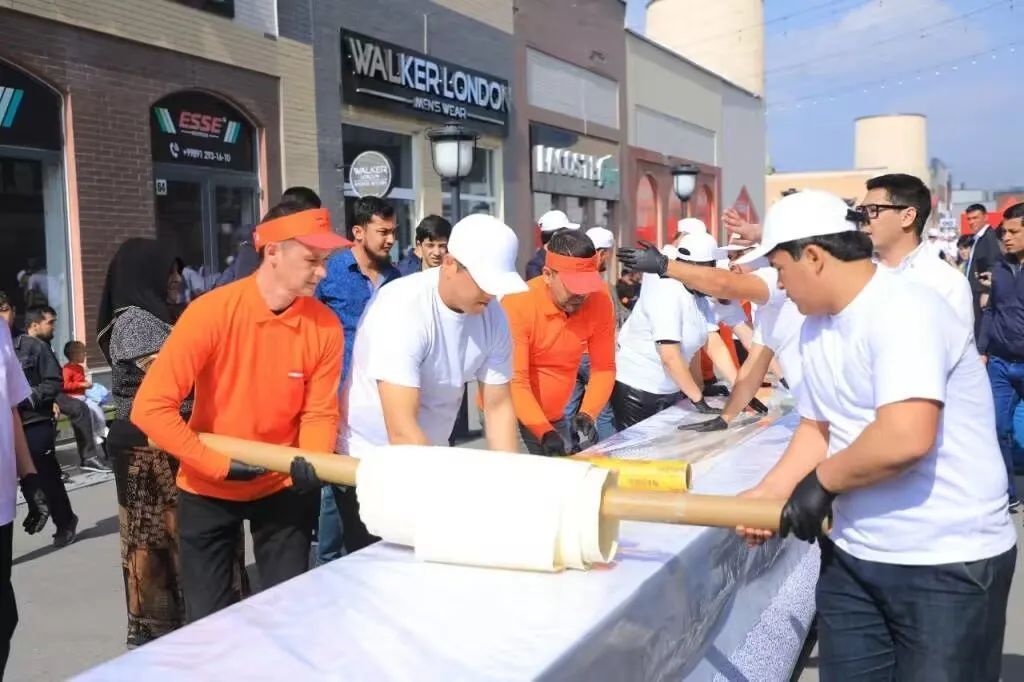 据悉,之前破纪录的拉瓦什薄饼是在塔什干制成的,长度为31.5米。