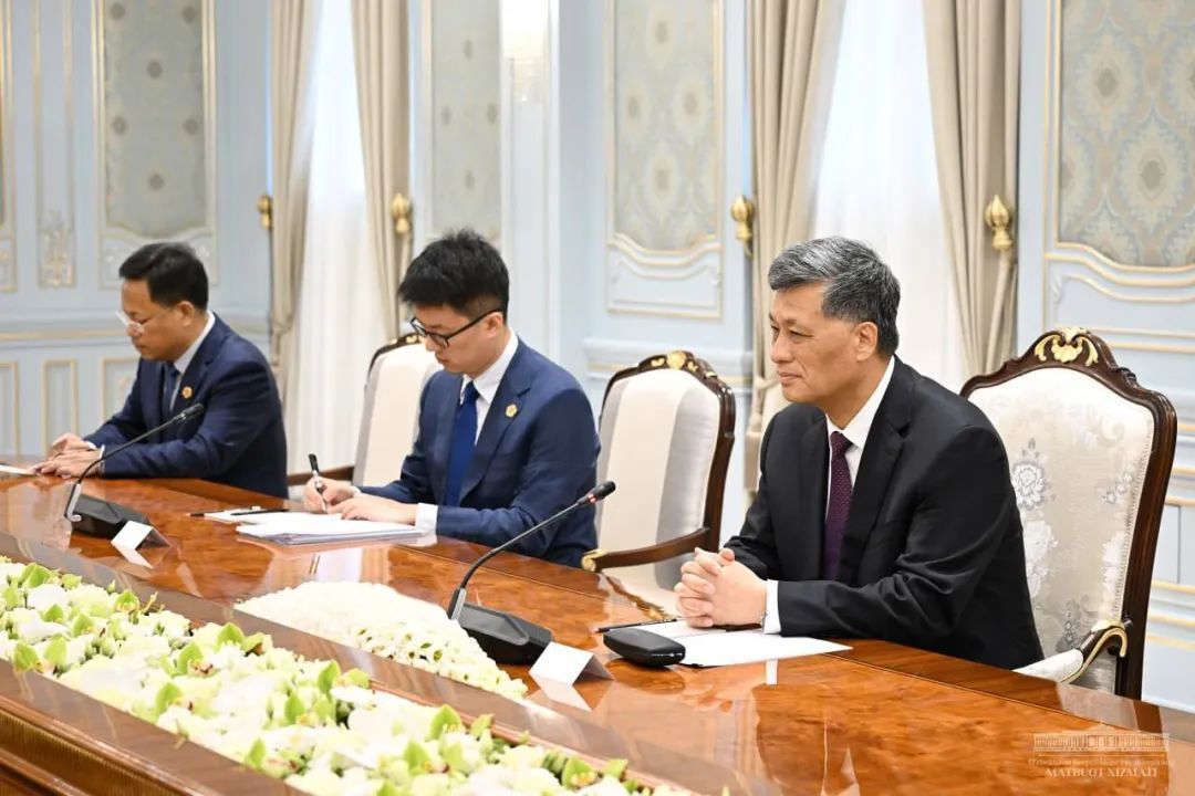 马兴瑞访乌期间会见乌兹别克斯坦总理阿里波夫。图源乌兹别克斯坦国家通讯社
