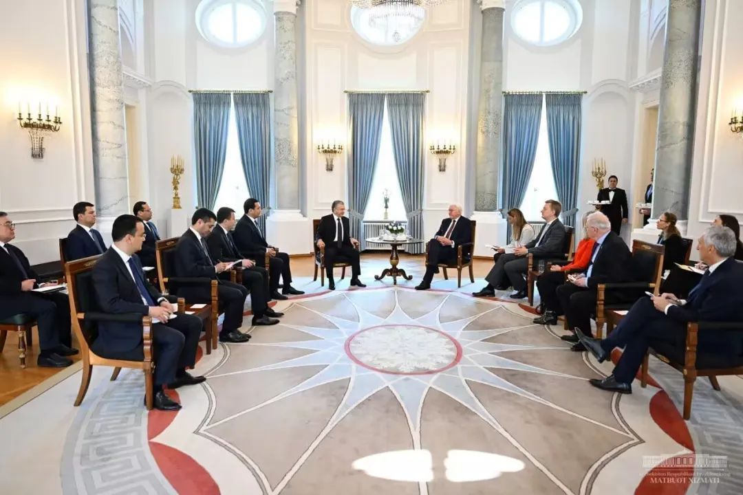 本次访问期间,米尔济约耶夫3日会见了德国领先企业和银行负责人,包括德国经济东部委员会、德国能源署、德乌商务理事会领导以及30家大型企业和银行负责人,如CLAAS、Knauf、Siemens Energy、Landesbank、Commerzbank、KfW Bank、Deutsche Bank等。