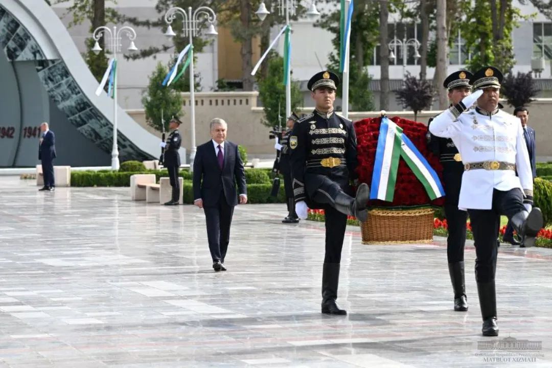 当地时间5月8日,米尔济约耶夫前往塔什干胜利公园,并向“坚定颂歌”纪念碑献花。