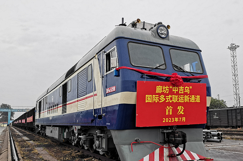今年以来,廊坊市在开通中欧(中亚)班列的基础上,进一步打通廊坊“中吉乌”国际多式联运新通道,采取铁路(廊坊—喀什)、跨国公路(喀什—奥什—安集延)、境外铁路(奥什—塔什干)的国际联运模式。该通道的开通,将进一步推动廊坊市“两枢纽、三基地”建设,为打造国际物流通道、大力发展多式联运带来更多机遇、提供更强保障、打造更强引擎。