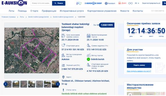 1年租期起拍价为572.1亿苏姆(约合447.2万美元)。拍卖将于当地时间11月25日10:00举行,最迟于当日9:00接受投标。