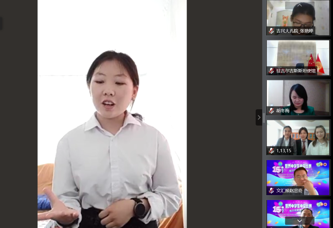 此次比赛采用线上形式举行,分为主题演讲、知识问答和中华才艺展示三个环节,其中,中华才艺展示以视频的方式提前提交评委打分;在“主题演讲”环节,选手紧扣“追梦中文,不负韶华”主题,用中文讲述学习经历,从不同角度展现对中国文化的认识,表达愿做中吉友好交流使者的愿望;“知识问答”环节,选手们答题时的肯定语气展现了他们丰富的中华文化知识储备。