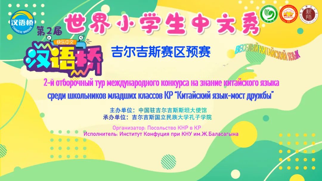 丝路新观察比什凯克5月23日电 5月21日,由中华人民共和国驻吉尔吉斯共和国大使馆主办、吉尔吉斯斯坦国立民族大学孔子学院承办的第二届“汉语桥”世界小学生中文秀吉尔吉斯斯坦赛区预赛在线上成功举行。来自吉尔吉斯斯坦全国各地8所中学的14名选手参加了比赛。