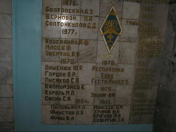 1974年,学校第一次招收学员。来自中亚各地和阿塞拜疆的年轻人来到了苏联吉尔吉斯首都。他们接受了"飞机和飞机发动机的技术操作"培训。学校最初被安置在城郊的一个单层营房里。那里几乎没有公共交通,但学员们并不为此感到困扰。实际上,他们处于戒严状态,住在军营里,由国家提供全部资金。