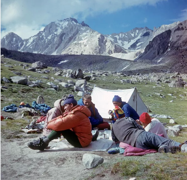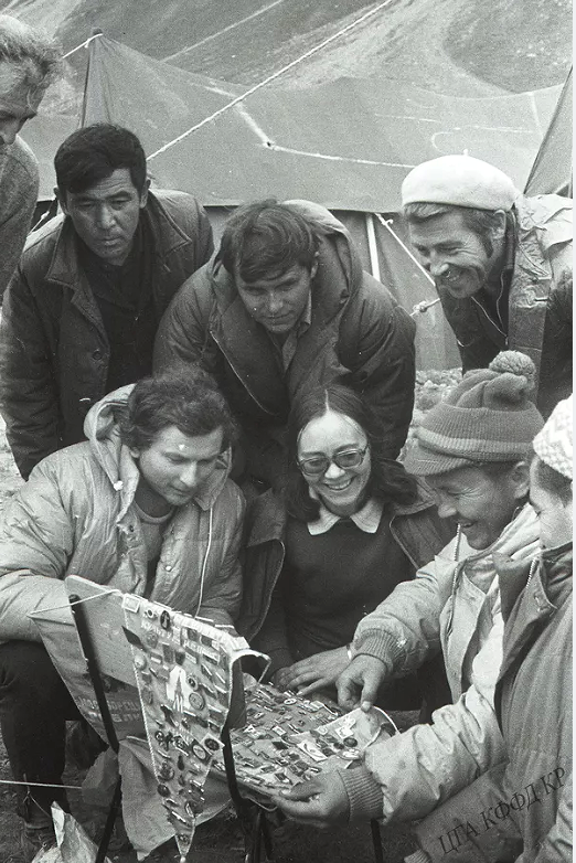 11.1974年,外国和吉尔吉斯斯坦登山者在休息。图片来源:吉尔吉斯斯坦电影和照片文件国家档案馆