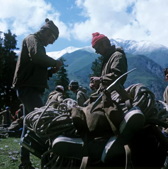 2.1981年,来自莫斯科体育俱乐部“斯巴达克”的登山者在柯克苏峡谷。卫星网记者扬琴科夫摄