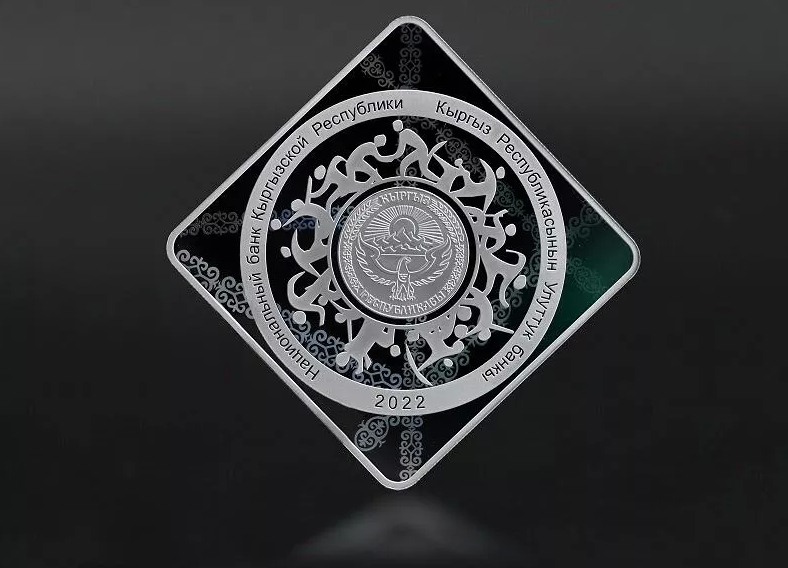亚运会纪念币正面主图为杭州2022年第19届亚运会会徽图案,运动员的形象以图标的形式代表亚洲不同的体育项目。沿纪念币圆周用吉尔吉斯文和英文刻有铭文“2022亚运会”,以及金属材质(Ag925)、重量(31.10g)和纪念币面值(10索姆)。发行量一千枚,价格3740索姆(1元人民币约合12索姆)。