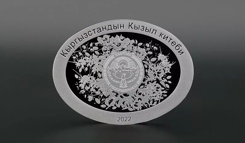 纪念币背面的主图是形象化的伏牛花图案。纪念币中央绘有吉尔吉斯共和国国徽。沿纪念币圆周用吉尔吉斯文刻有铭文“吉尔吉斯斯坦红皮书”,纪念币底部标有发行年份(2022年)。发行量一千枚,重量28.3克,价格3690索姆。
