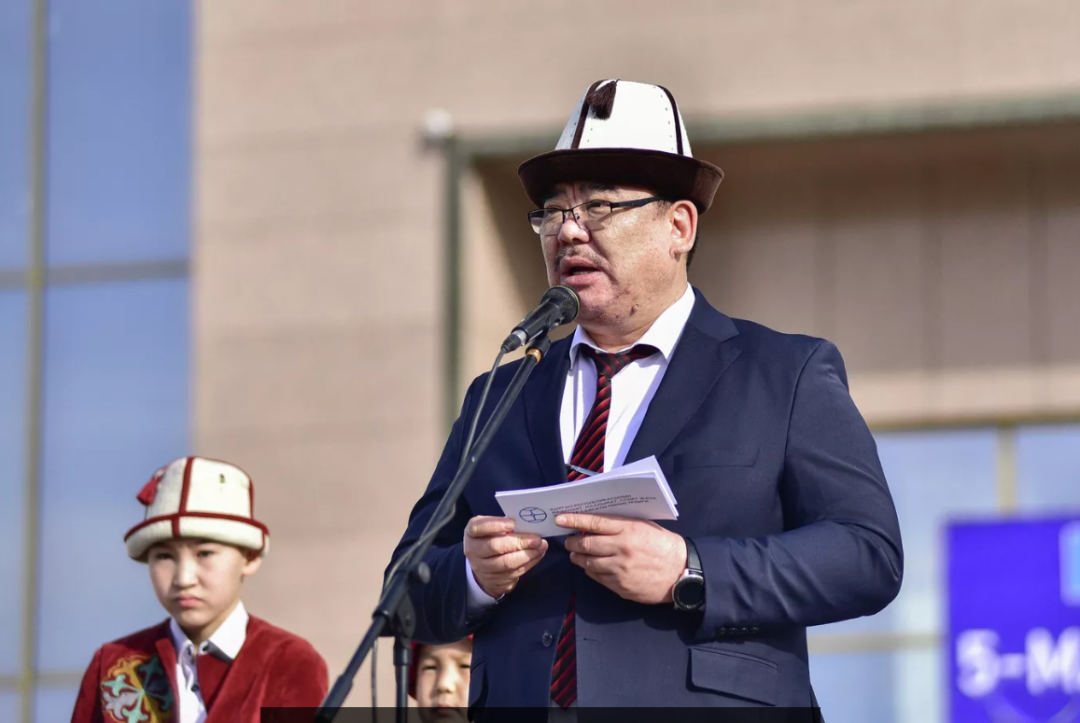 3月5日,在首都比什凯克阿拉套广场,吉文化部长马克苏托夫发表讲话。