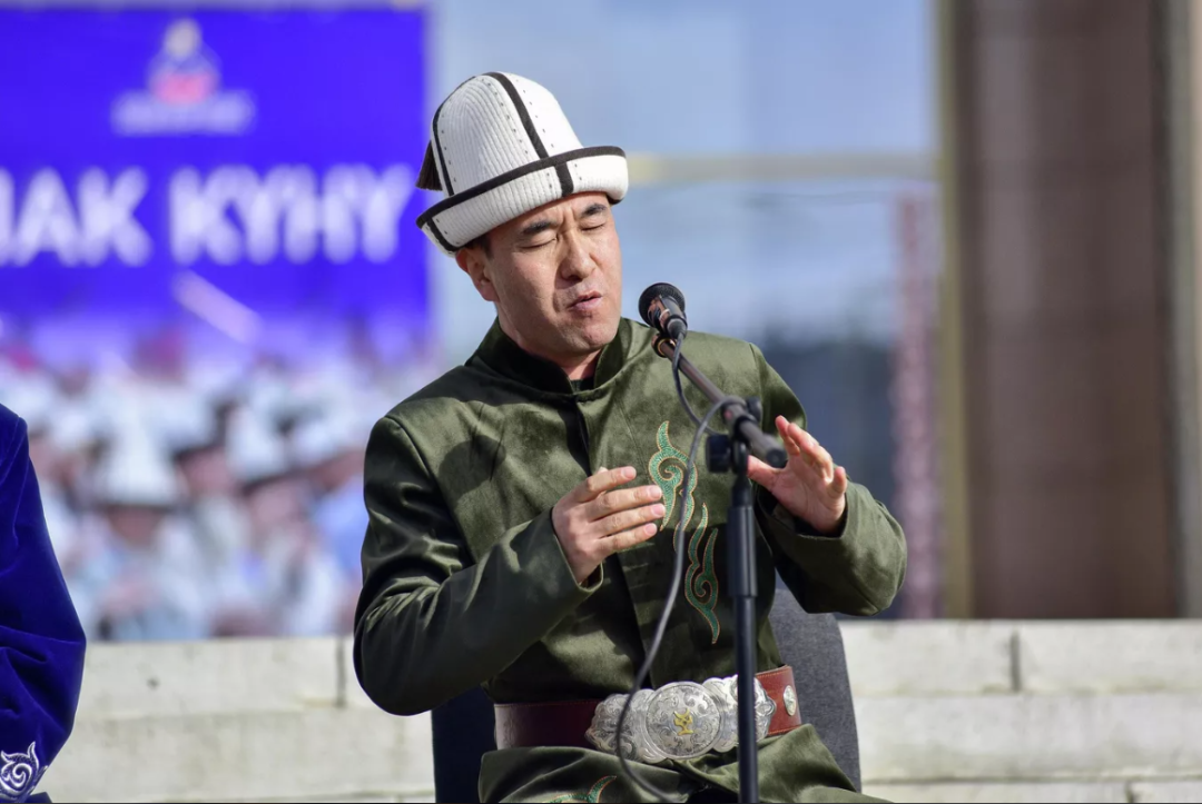 比什凯克:文化部长出席玛纳斯奇表演精彩
