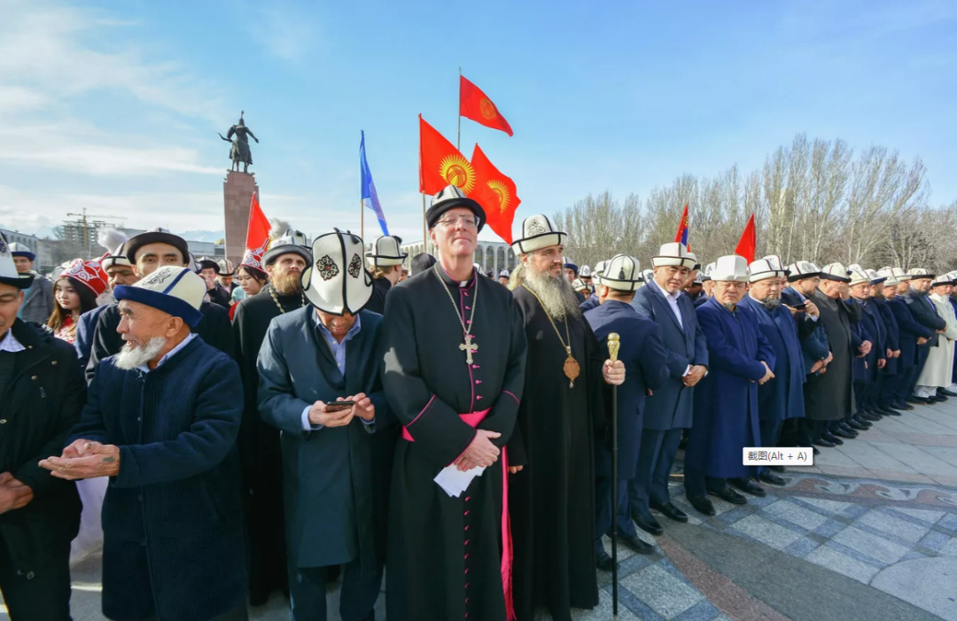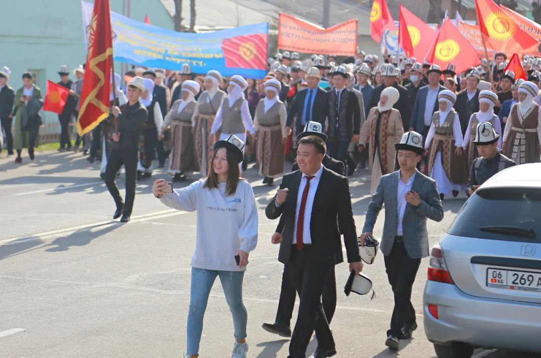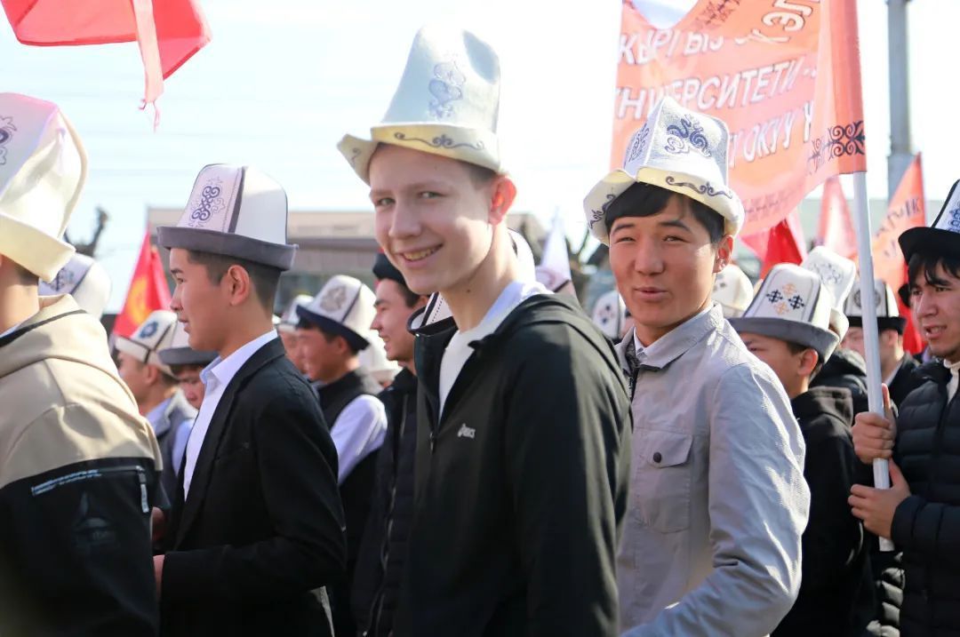 在各地的白毡帽节庆祝活动上,一大亮点是很多在吉尔吉斯斯坦留学的外国留学生也入乡随俗,戴起了白毡帽,加入了节日巡游的行列。不同教派的宗教界代表也出现在庆祝现场,送上了节日的祝福。