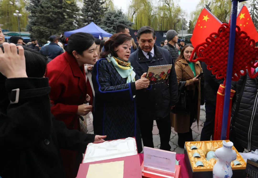 近日,吉外交部还组织了纳乌鲁斯节驻吉使团义卖活动。中国义卖展上的精致丝绸、陶瓷等工艺品和各类中国特色小吃吸引了众多路人前来选购、品尝。