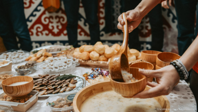 就拿纳乌鲁斯粥来说,虽然简单,但每个家庭的作法都不一样。这种粥由七种材料熬制而成。在哈萨克斯坦东部,最常见的是用马肉或马肠子、水、Ayran(阿伊让)、面粉或手工面条、大麦仁、小麦。