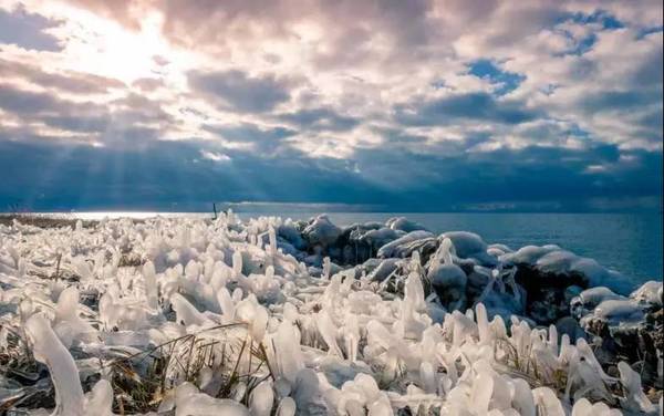 由于盐度高,即使在千里冰封万里雪飘的时候,这里的湖水也依旧湛蓝,所以伊塞克湖又称“盐湖”或者“热湖”。