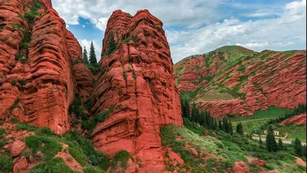 七牛岩是吉尔吉斯斯坦著名的景点,红色砾岩山体高大耸立,让人望而生畏。来到这里,才真的能感受到大自然的鬼斧神工。