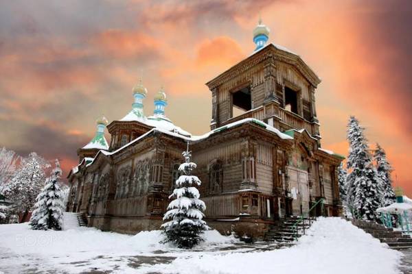 而位于卡拉库尔市的这座建筑,于1895年建成,在前苏联时期曾经被作为苏联军官俱乐部使用。1991年苏联解体后,这里就成为了教徒的礼拜地和观光景点。