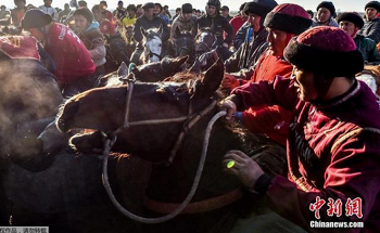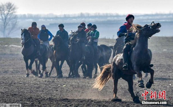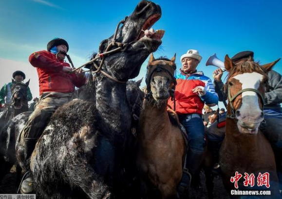 当地时间2020年2月15日,吉尔吉斯斯坦比什凯克郊外,在距离比什凯克约30公里的达查-苏乌村附近,传统的全国赛马活动 Alaman-Ulak 举行,约500名男子展开马背上的比拼。