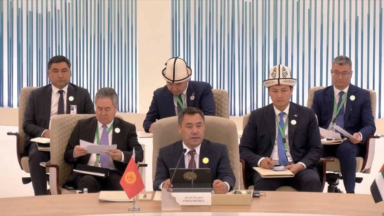 吉尔吉斯斯坦总统在讲话中首先感谢沙特方面领导人对本次峰会的出色组织和热情接待,并借此机会再次祝贺乌兹别克斯坦总统米尔济约耶夫赢得选举。