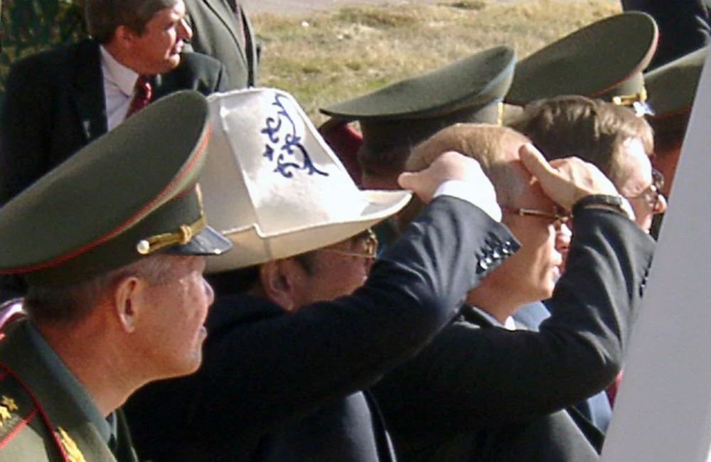 随后,两国总统与航空老兵会面并进行了简短交谈,之后观看了特别准备的飞行表演。俄罗斯骑士特技飞行队的苏-25 和苏-27 战斗机进行了表演。 作为阿富汗反恐联盟的一部分,美国和北约空军基地于2001年12月开始在玛纳斯机场运作,是外国军队首次进驻吉尔吉斯斯坦。 2014 年,美国在玛纳斯机场的军事基地关闭。