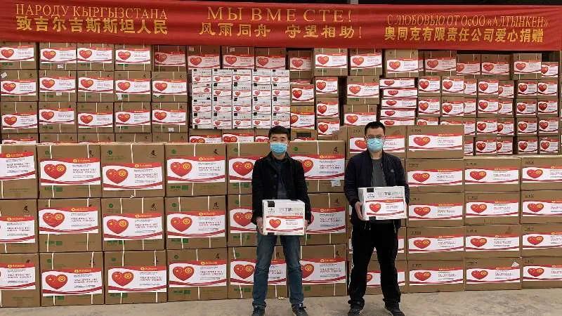 他表示,疫情无情,人间有爱。公司响应政府和股东号召,立即投入抗“疫”工作,在中国驻吉大使馆和吉尔吉斯斯坦中国总商会的倡议及帮助下,通过多方努力将从中国购买的价值20万美元抗“疫”物资第一时间移交至吉国卫生部。
