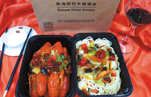 在味道和服务质量上下功夫,阳光阿拉木图酒店精心制做的外卖。
