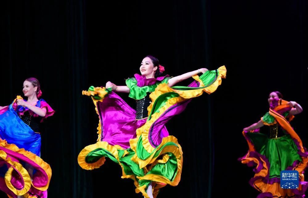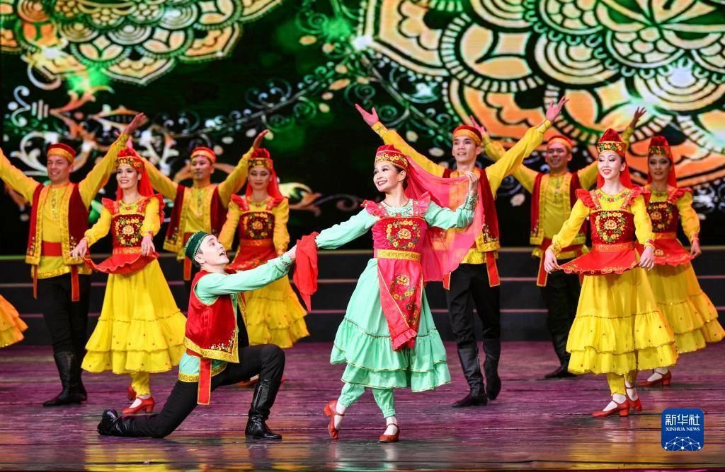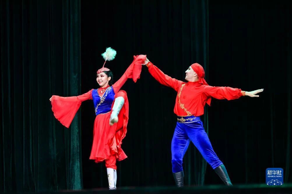 丝路新观察阿斯塔纳7月23日电 7月21日,哈萨克斯坦萨尔塔纳国家舞蹈团在新疆人民剧场登台首演,为观众带来歌舞晚会《富饶的家乡》。
