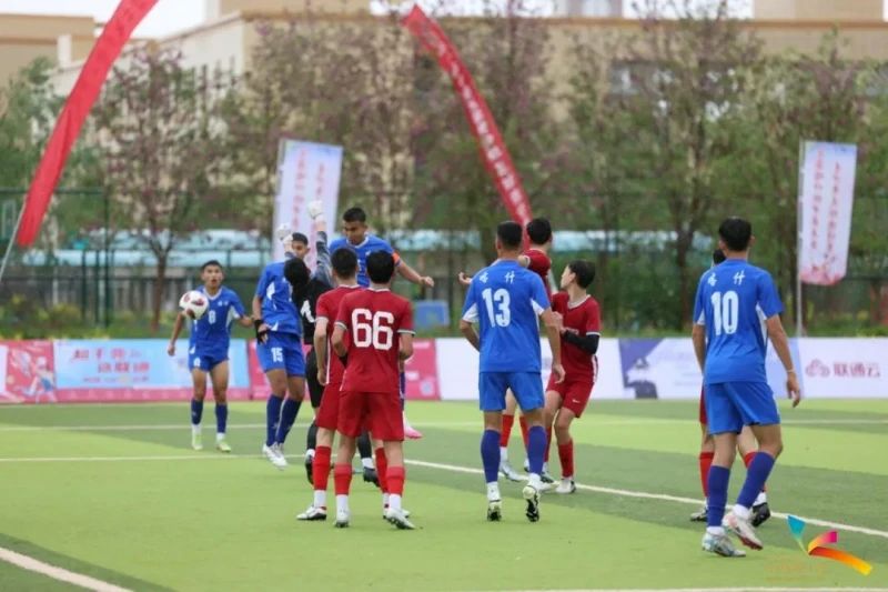 身穿蓝色球衣的喀什代表队和身穿红色球衣的哈萨克斯坦代表队打响了此次比赛揭幕战。