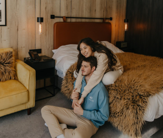 打开全景窗就可看到壮丽的山景,该酒店共有10个房间,设施齐全。每个房间都有独立的桑拿房,还有为滑雪者提供的运动装备和护具存放处。