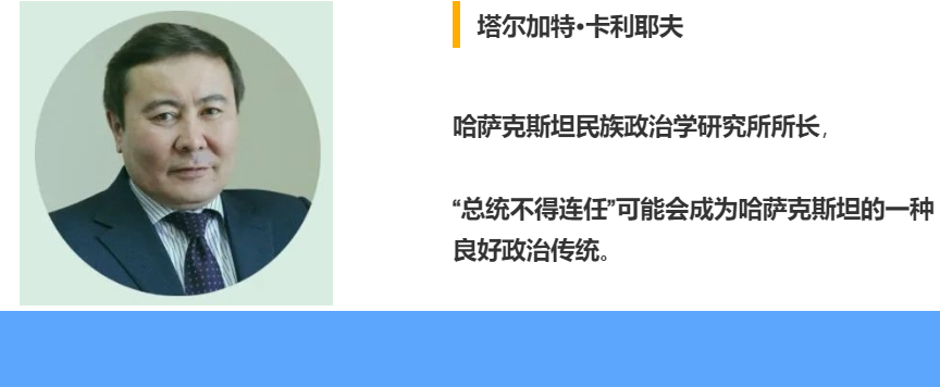哈萨克斯坦政治学家、民族政治学研究所所长塔尔加特·卡利耶夫认为,“总统不得连任”可能会成为哈萨克斯坦的一种良好政治传统。