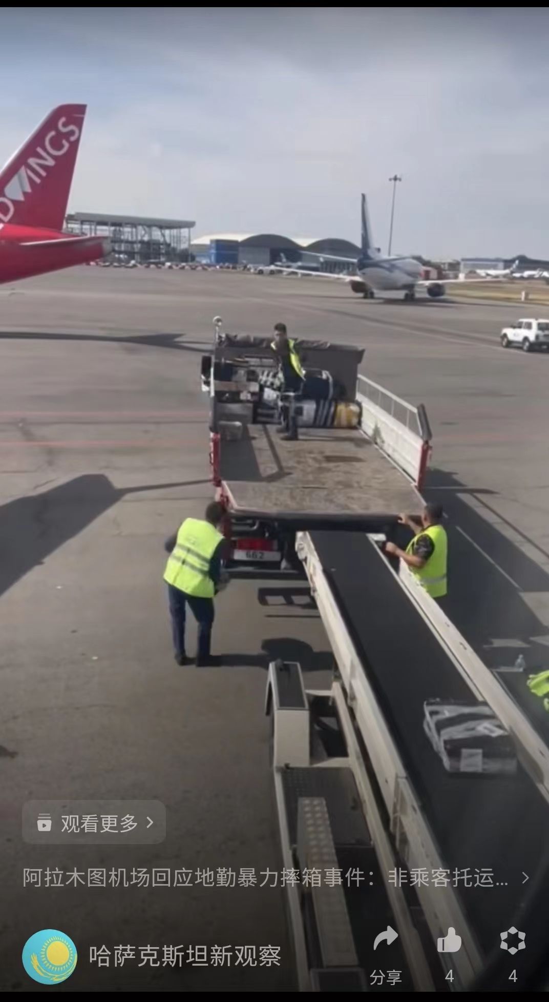 阿拉木图机场称,视频中的员工已收到警告。机场所有装卸人员都接受过培训,还为他们发放了正确分类货物的讲义。