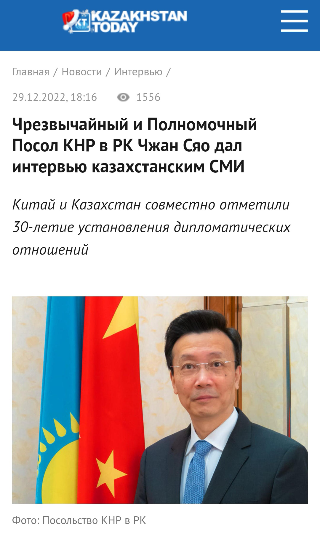 丝路新观察阿斯塔纳12月30日电 近日,中国驻哈萨克斯坦大使张霄就中共二十大、中哈关系等问题接受哈《实业报》、“今日哈萨克斯坦”网站、《今日丝路》报等主流媒体新年采访。全文如下: