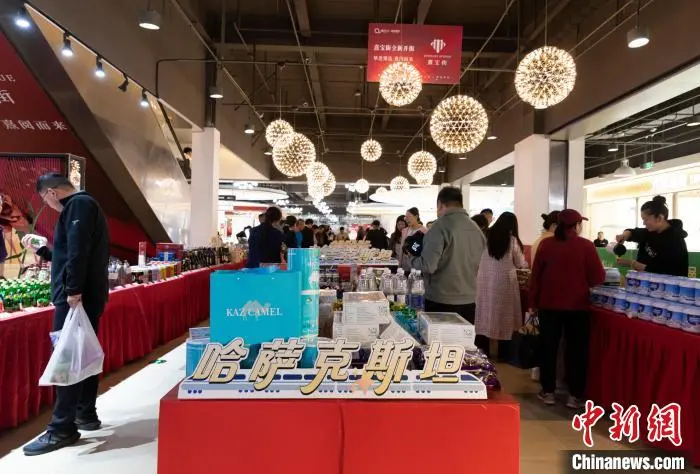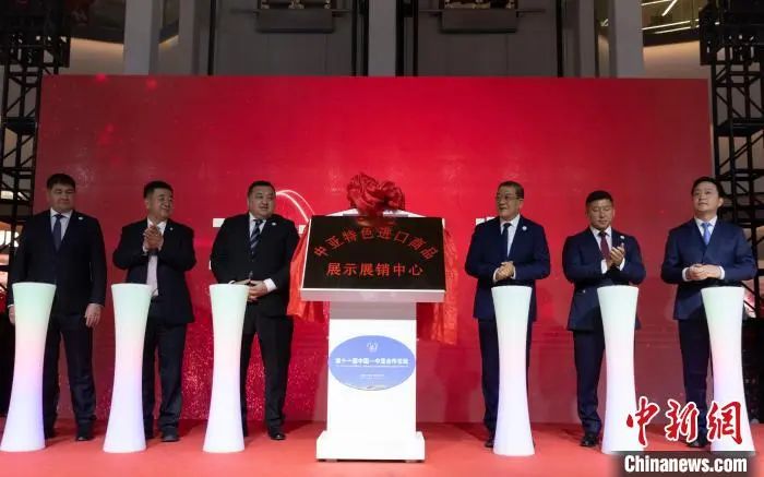 10月26日,中亚特色商品展示展销中心在银川揭牌。该中心总面积1300平方米,一期计划投入3000万元人民币,建成后将涵盖40多个品类上万件进口商品。图为揭牌仪式现场。中新社记者 杨迪 摄
