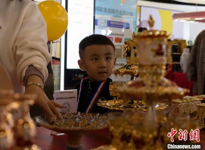 10月26日,中亚特色商品展示展销中心在银川揭牌,中亚特色商品展同步举行。图为中亚特色商品吸引小朋友。中新社记者 杨迪 摄