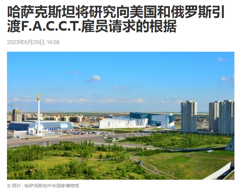 另据俄罗斯卫星网29日报道,哈萨克斯坦副总检察长乌兰·拜扎诺夫对卫星通讯社称,哈将研究向美国和俄罗斯引渡F.A.C.C.T.雇员尼基塔·基斯利钦的请求中陈述的根据。