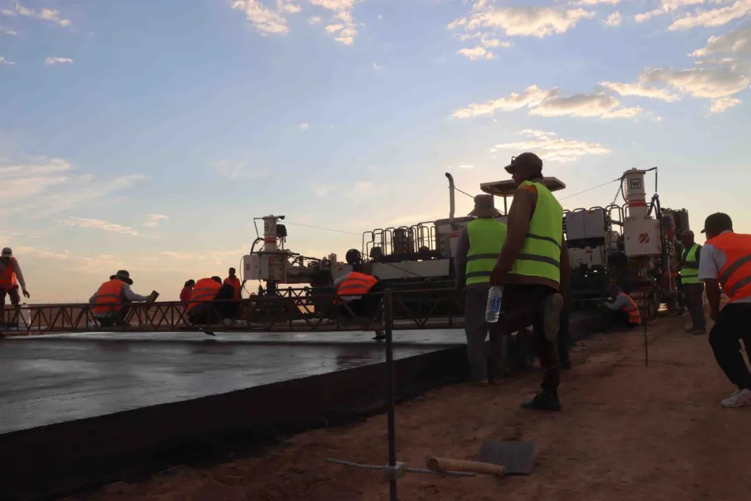 据悉,目前,项目现场共有员工500余人,其中中方员工90余人。该项目为水泥混凝土路面,宽9米,双车道。道路主体计划完工时间为2023年6月。