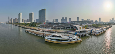 作为广东省、广州市重点工程,码头2021年底已完成大楼验收,2022年5月完成码头验收,建成5个500GT客船泊位,码头总长280米,设计年通过能力171万人次。
