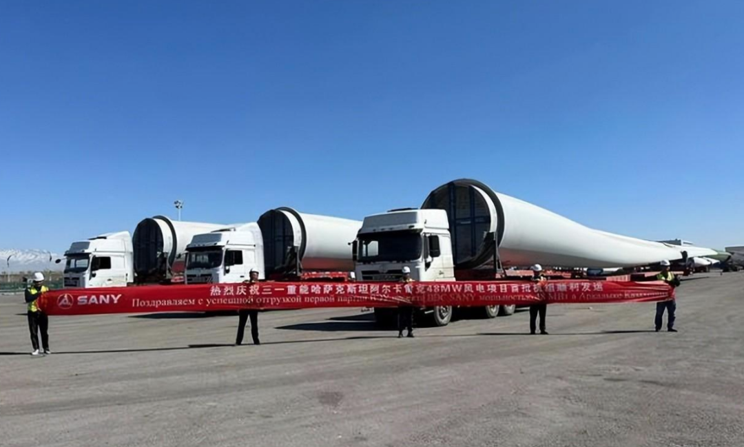 该项目设备分别由三一重能北京南口主机工厂、河北张家口叶片工厂制造,由三一重能国际项目部统一指挥国内外相关承运单位完成发运任务,途径河北、内蒙、甘肃到达新疆伊犁州霍尔果斯口岸,再由霍尔果斯口岸到达哈萨克斯坦阿尔卡雷克风电项目现场。