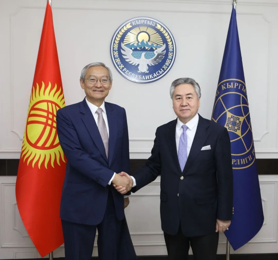 吉尔吉斯斯坦外交部长热恩别克・库鲁巴耶夫于11日同抵达吉尔吉斯斯坦参加5月13日在乔尔蓬-阿塔市举行的上海合作组织伊塞克湖国际马拉松赛的上海合作组织秘书长张明举行会谈。