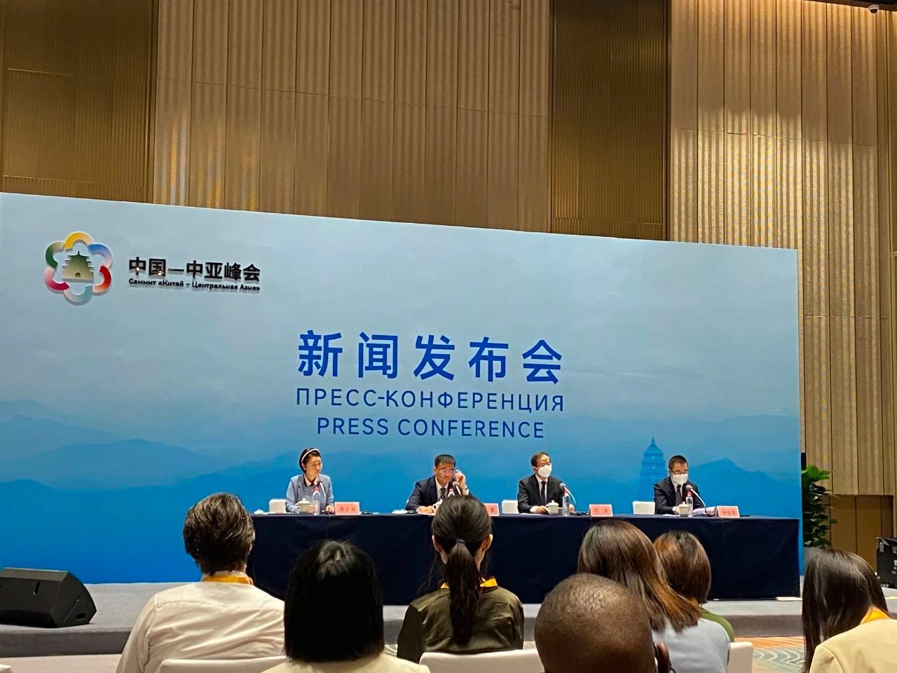 丝路新观察比什凯克5月16日电 中国—中亚峰会新闻中心于今天(16日)下午3时在新闻中心新闻发布厅举行吹风会,外交部欧亚司、文旅部国际交流与合作局、中国贸促会国际联络部有关负责人介绍了峰会情况并回答记者提问。吉尔吉斯斯坦丝路新观察全媒体记者乔尔波奈·图尔达库诺娃(大乔)参加了本次发布会并现场提问。