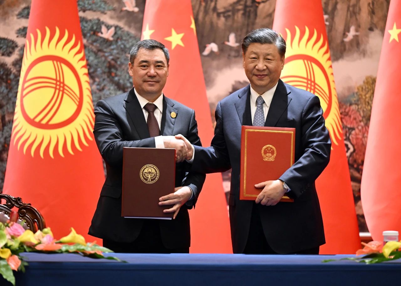 中吉两国元首签署《中华人民共和国和吉尔吉斯共和国关于建立新时代全面战略伙伴关系的联合宣言》。卡巴尔通讯社发