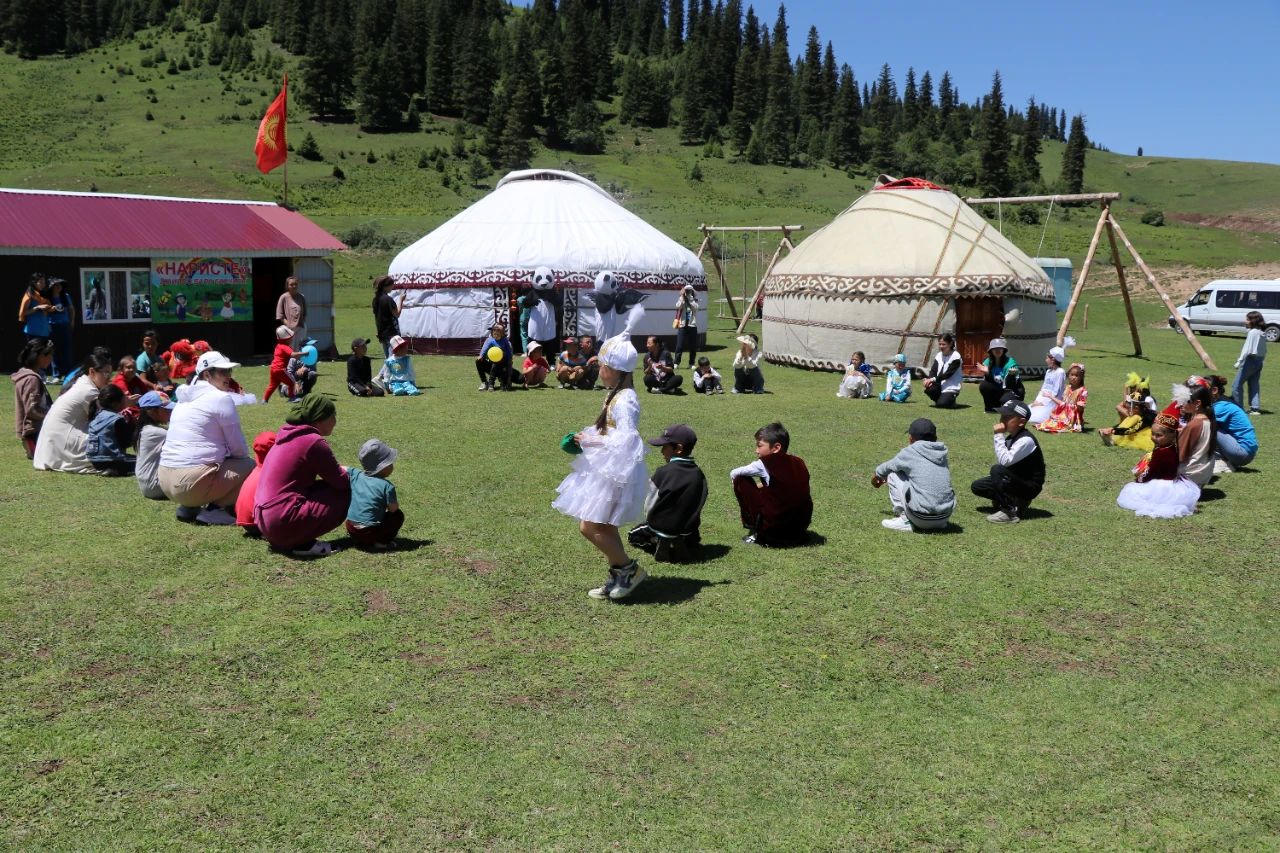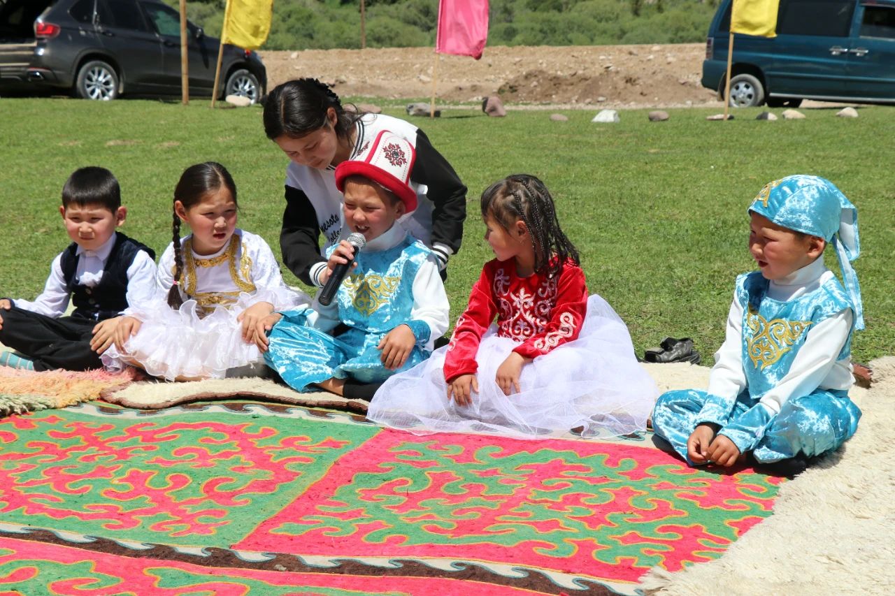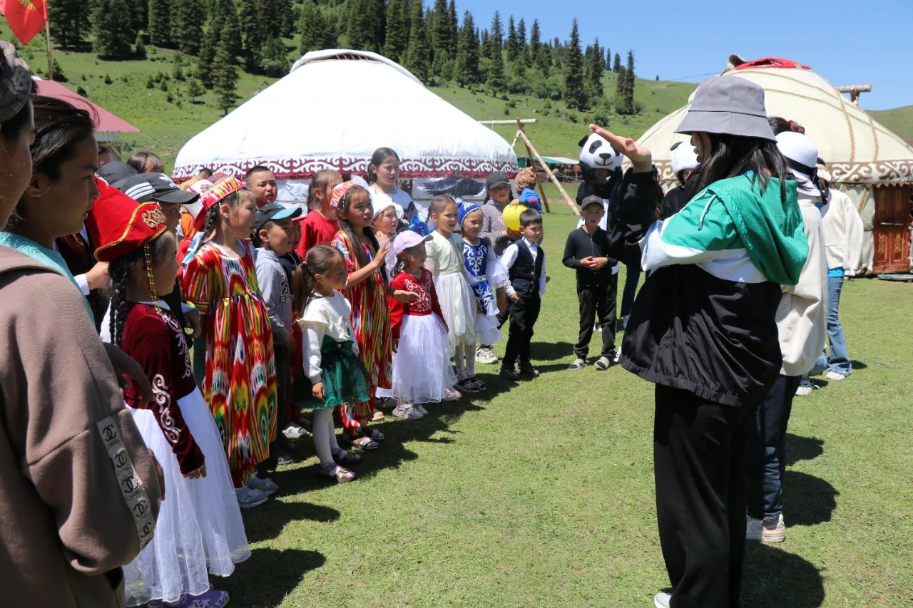 当日,中国文化体验活动在卡尔克拉草原的两所夏季牧场幼儿园开展。每年6月至8月,在吉各地开办的夏季牧场幼儿园既解决了暑期牧民家孩子无人看管的问题,也为牧区的孩子们提供了丰富的暑期文化活动和学习班。