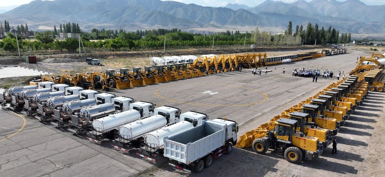 吉尔吉斯斯坦政府为交通公路部门采购设备的第一批84台已于6月21日完成交付。此次到货的设备大部分是中国山推、豪沃品牌。