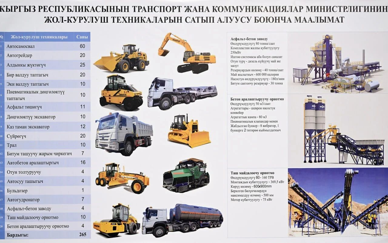 扎帕罗夫指出,以前的公路设备主要是通过贷款或赠予的方式取得,从去年开始,公路设备的购买由国家预算出资,国家为此拨款约50亿索姆,到2026年将总共购买约700辆专用设备。目前已有265台设备运抵吉尔吉斯斯坦。