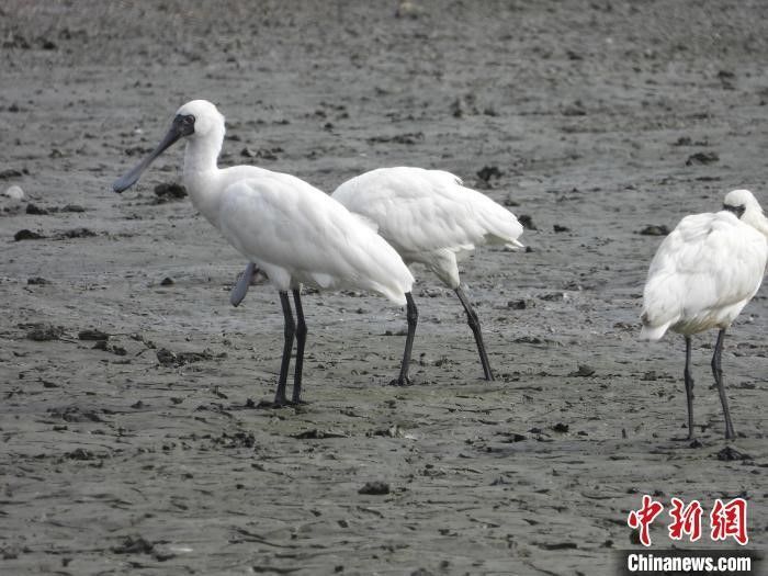 黑脸琵鹭在浅滩觅食(资料图)。广东省林业局供图